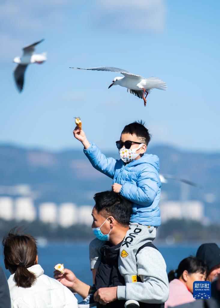 當(dāng)日,云南省昆明市陽光明媚,滇池海埂大壩游人如織,人鷗同樂成為昆明的一道風(fēng)景線。