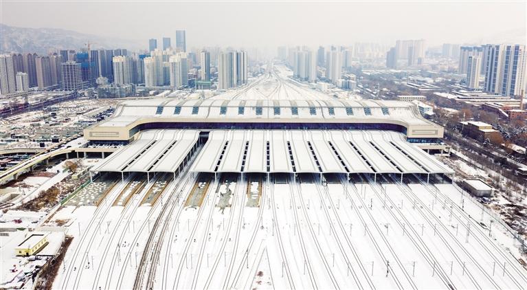 2月6日,在蘭州西站,鐵路線路隱沒(méi)在白雪之中。記者 馬軍 攝