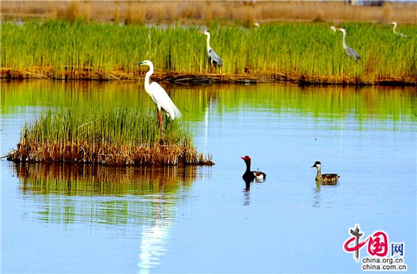 很多鳥類對(duì)生存區(qū)域極為挑剔,環(huán)境稍不如意,便會(huì)另覓佳處。這里水質(zhì)清冽,空氣純凈,湖草肥美,魚食豐盛,正是很多鳥類遠(yuǎn)途中的理想家園或行途驛站。據(jù)悉,全球九條候鳥遷徙路線中有三條路過中國(guó),其中有兩條遷徙路線在寧夏重疊,沙湖以其良好的自然生態(tài)環(huán)境,為眾多候鳥過境寧夏時(shí)提供了重要棲息繁衍地。
