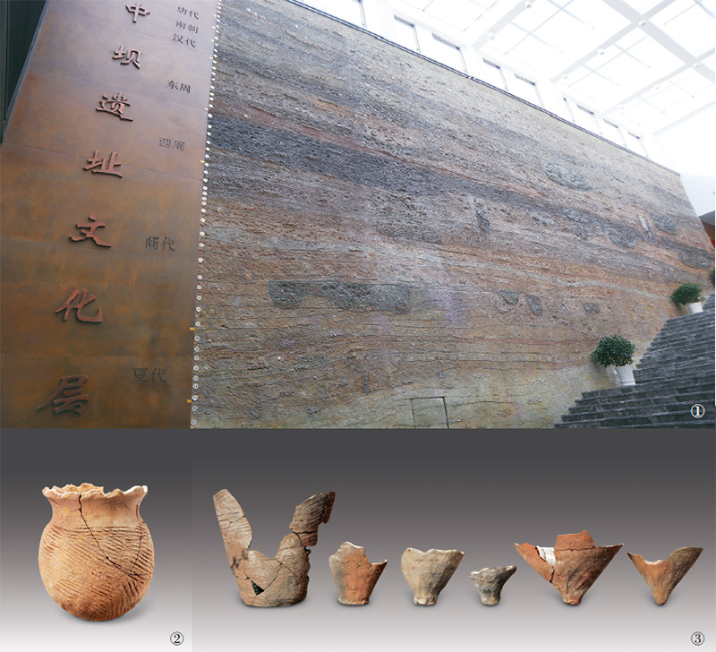 重慶中壩遺址出土的地層文物,完整包含了新石器時(shí)代晚期、夏商周、秦漢、魏晉南北朝、唐宋元明清不同時(shí)代的所有地層,可以讓人們直觀感受到中華五千多年文明綿延不絕的偉大與震撼。圖1為中壩遺址剖面還原圖(圖片來源:重慶市忠縣縣委宣傳部)。圖2、圖3分別為中壩遺址出土的制鹽陶器花邊口圜底罐、花邊口尖底缸底(圖片來源:科學(xué)出版社)。