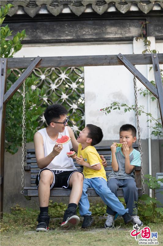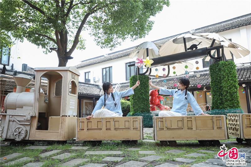 夏日遲遲至,古鎮(zhèn)緩緩行。坐一趟手搖船,穿行在23°的水巷,看陽光透過樹影落在水面上的斑駁,聽搖櫓聲聲撥動碧水的悠然,悄然經(jīng)過匆匆那年。赴一場紙箱王之約,穿梭在紙藝王國,吃一頓盈滿時光的紙上美食。坐上紙做的小火車放飛夢想,在紙箱王古郵局描繪出未來的藍(lán)圖。行走在貞豐文化街上,看貞豐十二坊的匠人匠心,觀水鄉(xiāng)周莊的人間煙火。走累了便去蘇繡藝舍感受蘇繡的獨特魅力,到爐韻沉香研習(xí)香道茶藝……一盞清茶一爐香,一衣帶水歸故鄉(xiāng)。