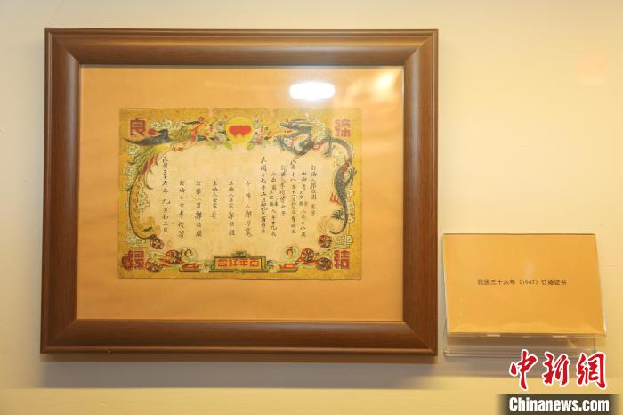 圖為博物館展出的民國時(shí)期的訂婚證書?!⒘?nbsp;攝