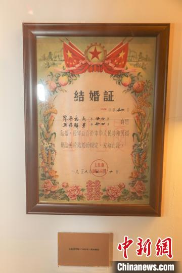 圖為博物館展出的建國初期的結(jié)婚證?!⒘?nbsp;攝