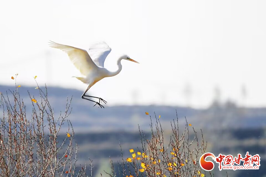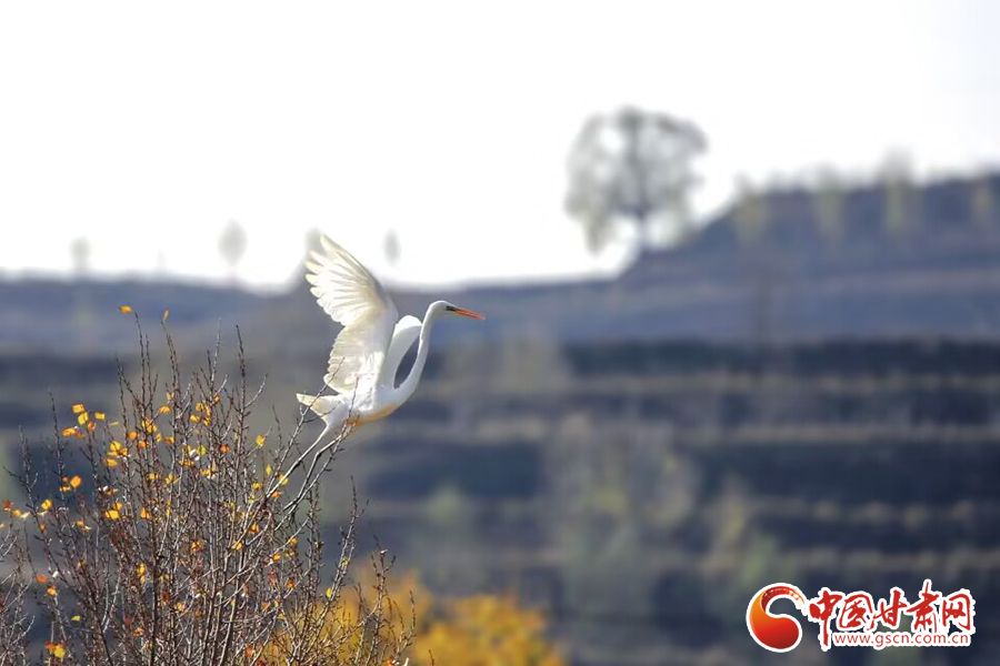 【隴拍客】平?jīng)龀缧牛荷鷳B(tài)美 鷺鳥飛