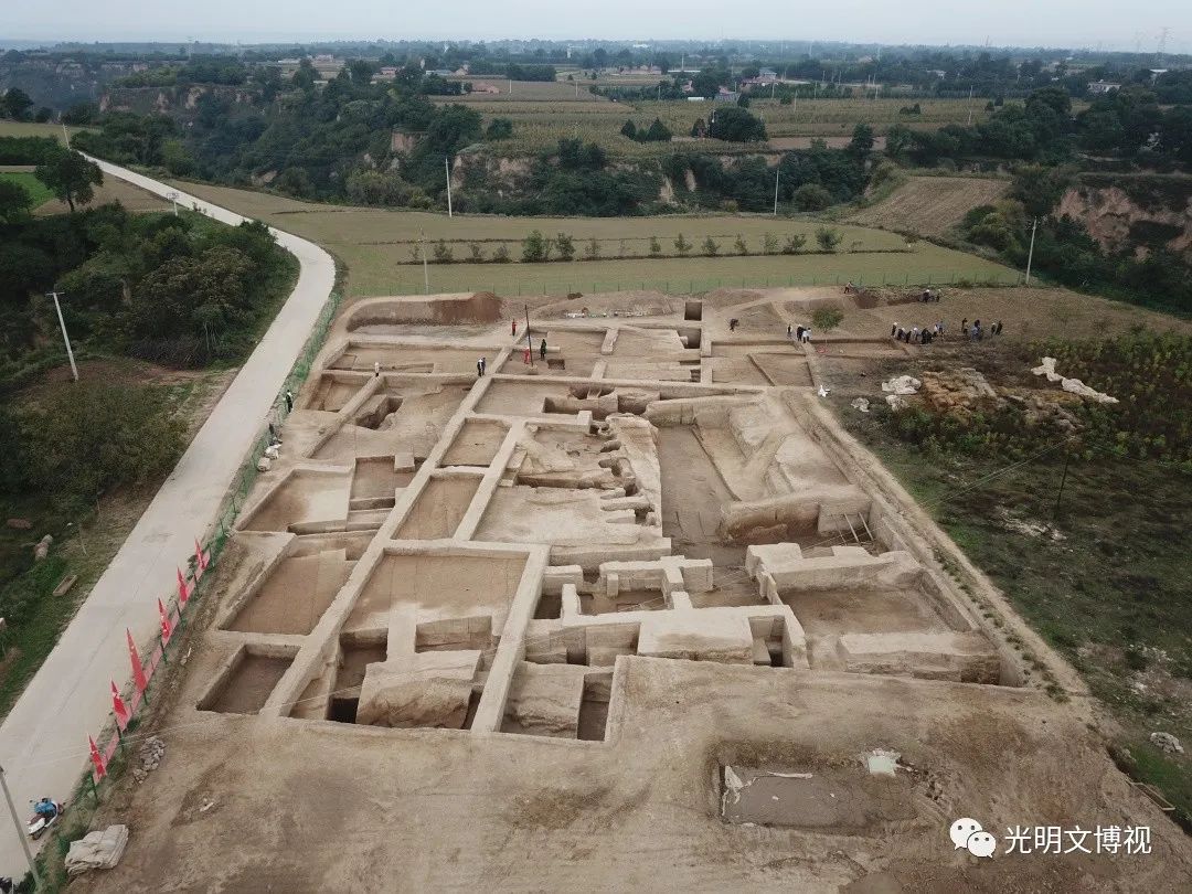 經勘探和試掘,在“九臺”外其他區(qū)域還發(fā)現(xiàn)有多處白灰面窯洞式房屋居住區(qū)、夯土臺、壕渠水利工程等,加上可能存在的外環(huán)壕,整體建設工程量巨大。所有這些工程的主體部分理應是大體同時建造完成的,因此需要數(shù)千人勞作數(shù)年,這還不包括建筑工程的后勤保障在內。據(jù)此推測,南佐都邑人口或許有上萬之眾。也只有出現(xiàn)了強制性的區(qū)域“王權”,集合起國家力量,才有可能完成如此壯舉。