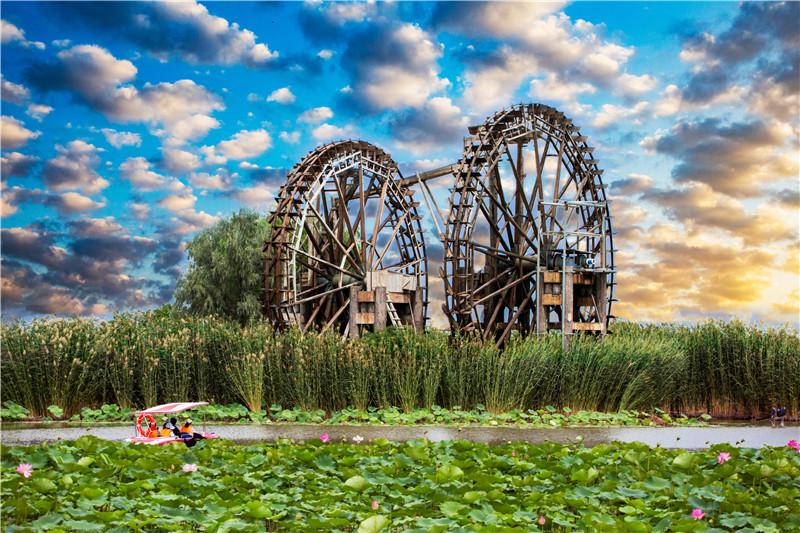 銀川市濕地(包含河流水域)面積531平方公里(80萬畝),占市域土地總面積7.65%,人均濕地面236平方米,是全國的6倍,市區(qū)濕地率達到10.65%,濕地保護率達到78.5%,2018年被評為我國首批“國際濕地城市”。鳴翠湖位于興慶區(qū)掌政鎮(zhèn),總規(guī)劃面積8840畝,是歷史上銀川“七十二連湖”重要組成部分,是中國西部地區(qū)和黃河流域首家國家濕地公園、“國內(nèi)首個立體生態(tài)荒漠化濕地成功修復力作”、國家水利風景區(qū)、國家4A級旅游景區(qū),享有“中國最美濕地公園”“中國生態(tài)保護最佳濕地”等美譽。銀青公路穿湖而過,將其分為南北兩湖,其中:南湖為濕地生態(tài)保護核心區(qū)占地3845畝,只進行濕地保護與恢復性建設(shè);北湖占地4995畝,進行濕地景觀建設(shè)和濕地生態(tài)旅游項目的開發(fā)經(jīng)營。鳴翠湖湖泊面積占湖區(qū)面積的80%,景區(qū)生物多樣性富集,有維管植物109種、水生浮游植物69種、鳥類97種。湖光瀲滟、蘆葦蕩漾、楊柳依依、水車吱吱、魚翔淺底、百鳥鳴翠,遠望水鷺雙飛起,近看風荷一向翻;接天蓮葉無窮碧,映日荷花別樣紅,在我國西北干旱地區(qū)和黃河沖積平原區(qū)域具有典型性和代表性。