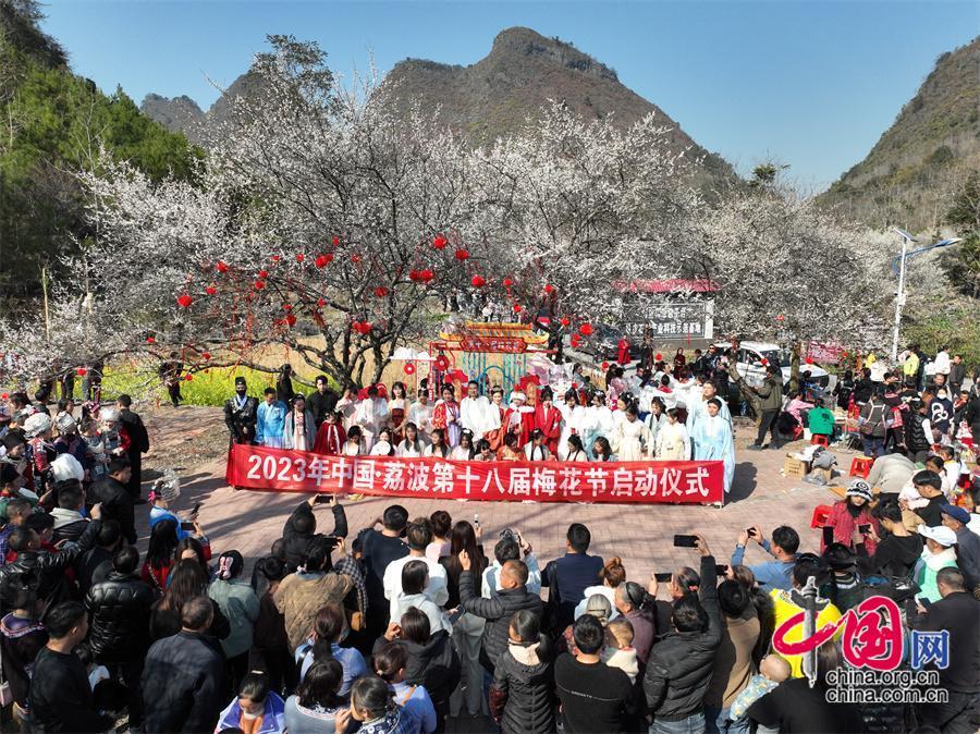 眼下,荔波縣萬畝梅原景區(qū)已經(jīng)進入最佳觀賞期。1月30日,2023年中國·荔波第十八屆梅花節(jié)開幕,八方游客齊聚荔波縣黎明關水族鄉(xiāng)萬畝梅原景區(qū),聽曲、賞梅、品茗、觀演出,共賞梅原盛景。