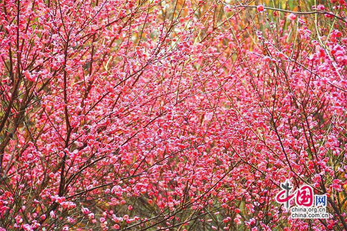 湖南新邵縣委黨校數(shù)千株寒梅迎春綻放。中國網(wǎng)發(fā)