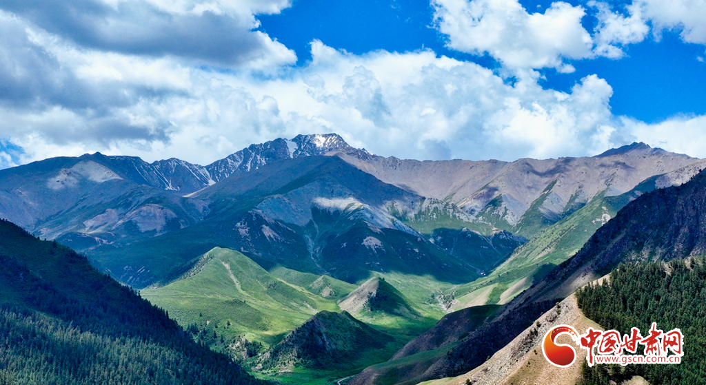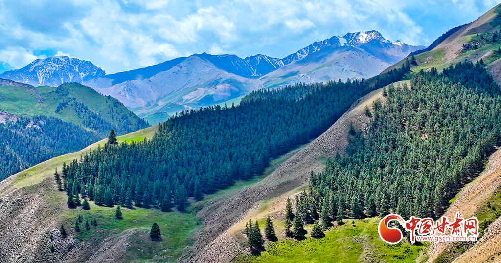 6月29日,在祁連山國家公園甘肅省張掖市肅南裕固族自治縣大河鄉(xiāng)段,藍天白云下,巍峨壯麗的祁連山蒼松翠柏,水光粼粼,構(gòu)成一幅美麗的畫卷。