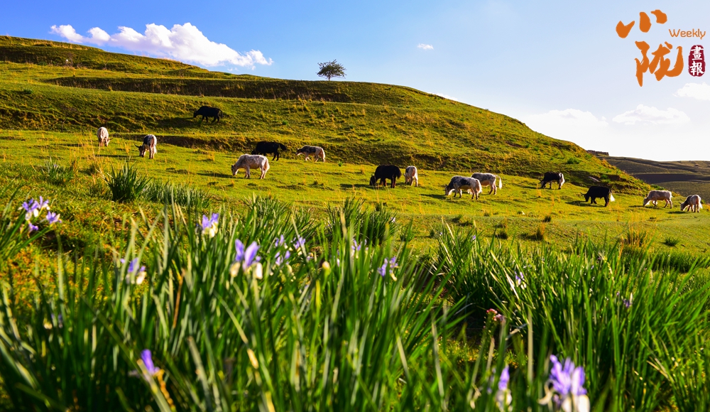 水草豐美、牛羊遍山,馬蓮花開(kāi)出藍(lán)紫色花朵,給這一方水土染上了豐富的色彩。