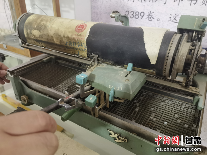 近日,甘肅省白銀市靖遠縣大壩村民俗博物館吸引游人參觀。圖為老式打字機。劉玉桃 攝