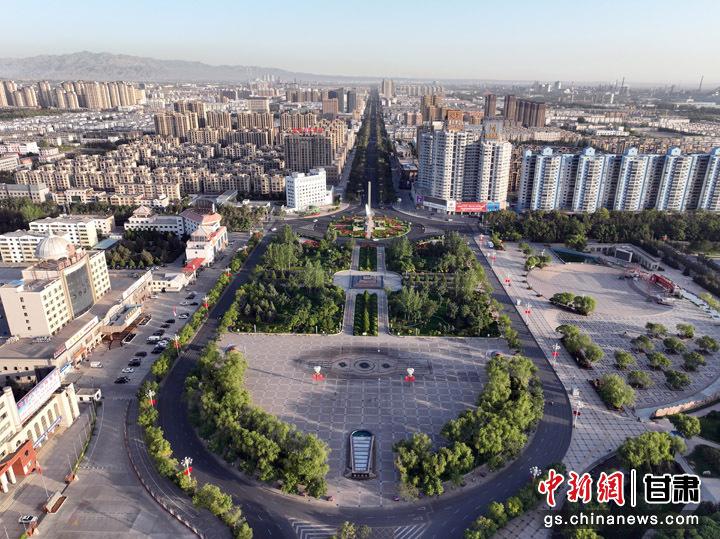 航拍嘉峪關市雄關廣場。 毛建軍 攝