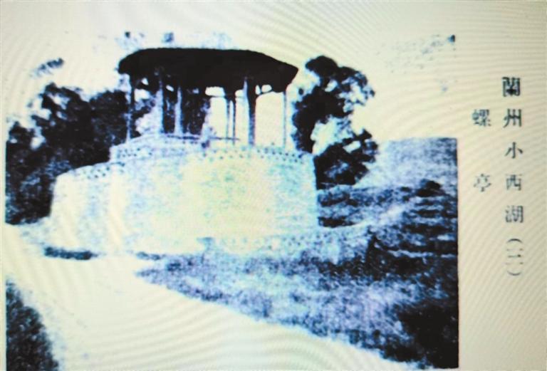 薛桂輪《西北視察日記》一書中寫道,當時的小西湖,周廣二百余畝,猶存龍王廟、東西院、宛在亭、螺亭、四明亭等建筑。“東西院建筑頗為幽雅,西院穿墻題名晚紅院,背題醉流霞,內(nèi)有盟鷗館、夢魚齋、惠風軒,各懸聯(lián)語。東院穿墻題名早紅院,背題挹爽氣,內(nèi)有藕香館、思鱸齋、嘉魚軒,亦各懸對聯(lián)。”“螺亭位于園之北墻,下臨黃河,盤旋而上。不但全園風景了如指掌,即蘭州山水亦歷歷在目。”作者游園之余,還在小西湖制高點螺亭“於此攝全園活動影片并園外黃河風景”。