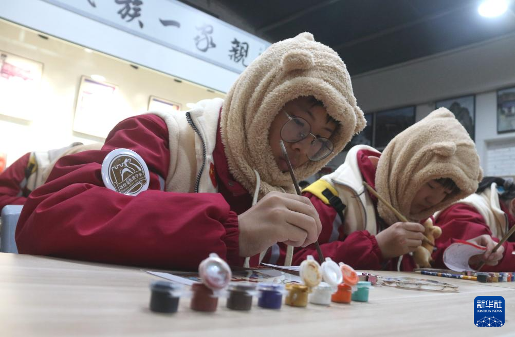 1月17日,在甘肅敦煌莫高里工匠村研學(xué)課堂,研學(xué)團(tuán)隊(duì)學(xué)員學(xué)習(xí)臨摹敦煌壁畫(huà)。新華社發(fā)(張曉亮 攝)