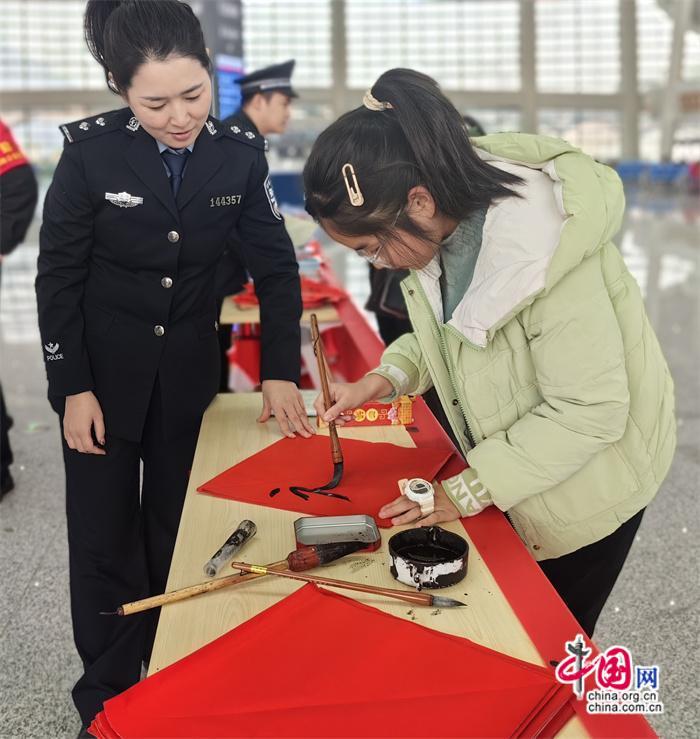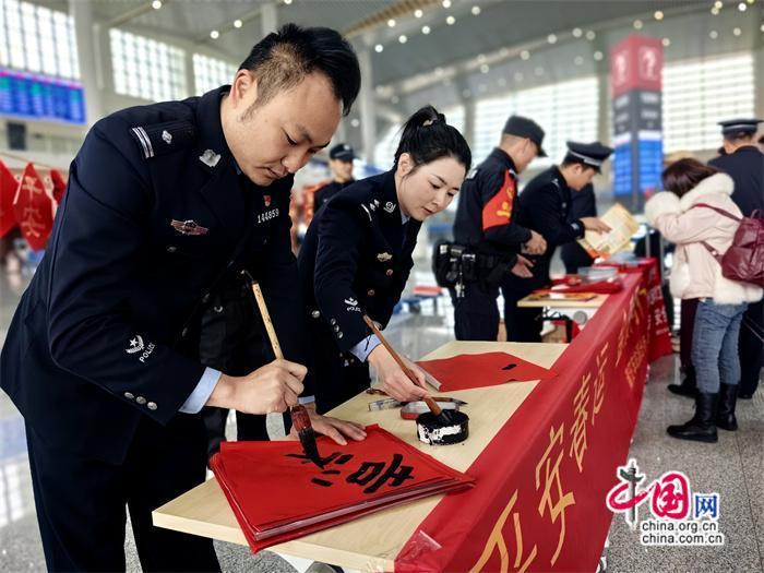 本次活動(dòng)由莆田車站派出所牽頭組織,聯(lián)合中信銀行、莆田站共同開展?;顒?dòng)期間,民警與志愿者在莆田站甬廣場候車室為旅客發(fā)放高鐵安全宣傳單及春聯(lián),并由青年民警現(xiàn)場書寫春聯(lián)、福字送給來往旅客,將平安、溫馨傳遞給每一個(gè)人。