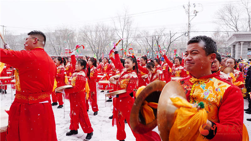 社火一直是元宵佳節(jié)的“重頭戲”,一支支社火隊(duì)不畏嚴(yán)寒,華冠麗服盛裝出行,精神抖擻、氣勢磅礴,舞長龍、耍獅子,和著鑼鼓的節(jié)奏,彩龍翻騰飛旋,靈活游走,時(shí)而盤旋昂首,時(shí)而破空直上。雄獅騰挪跳躍,登高朝拜,憨態(tài)可掬、妙趣橫生。