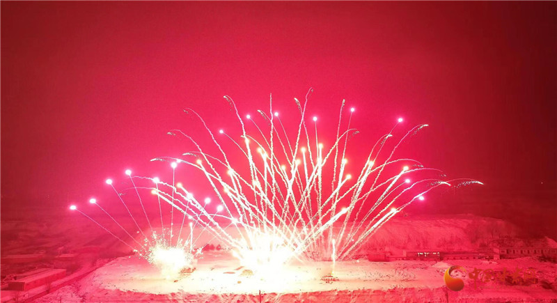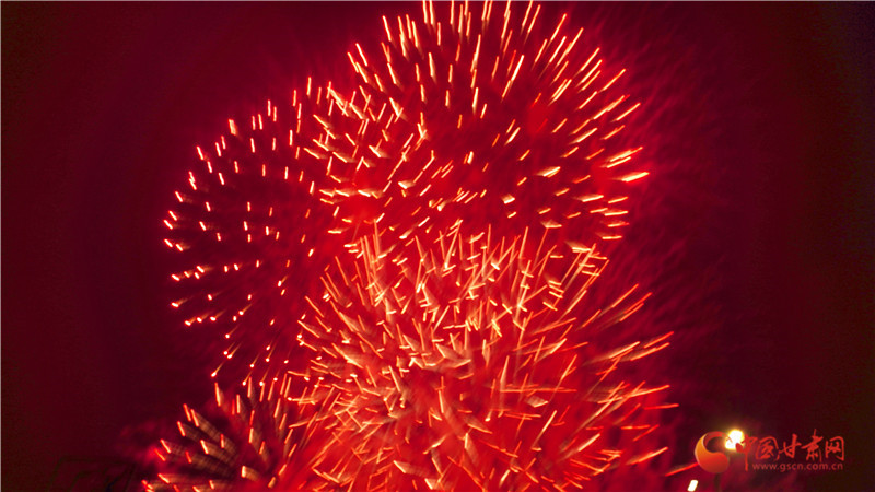 以焰火為筆,以星空作畫。晚8時(shí)許,焰火在夜幕中徐徐點(diǎn)亮,一朵朵、一束束焰火騰空而起,直沖云霄、綻放出耀眼的光芒。洶涌澎湃的銀河瀑布如金似玉從天庭倒掛,飛流而下,層層疊疊。依次從地面升起的各種禮花,如明珠,似繁星在空中閃爍,綻放出一幅幅絢麗壯觀、色彩繽紛的美麗畫卷。璀璨絢爛的煙花與小城的夜景、群眾的歡聲笑語、相機(jī)的快門聲交相輝映,大家都沉浸于濃濃“年味”和新春喜悅中。