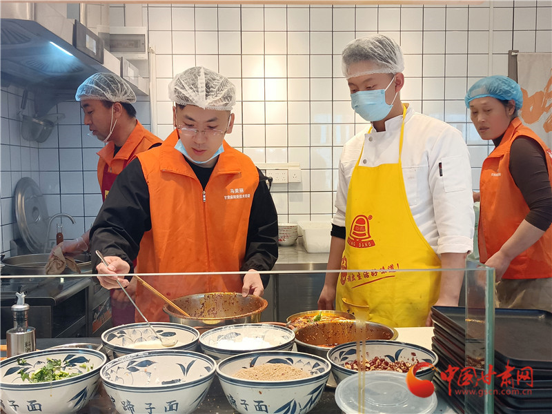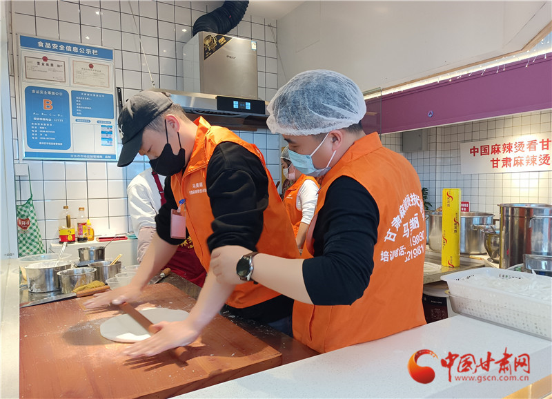 潑辣椒,制作手搟粉,在老師的帶領(lǐng)下,王學(xué)佳一個(gè)步驟一個(gè)步驟地學(xué)習(xí)天水麻辣燙的要領(lǐng),希望能將正宗的天水麻辣燙帶回東北。