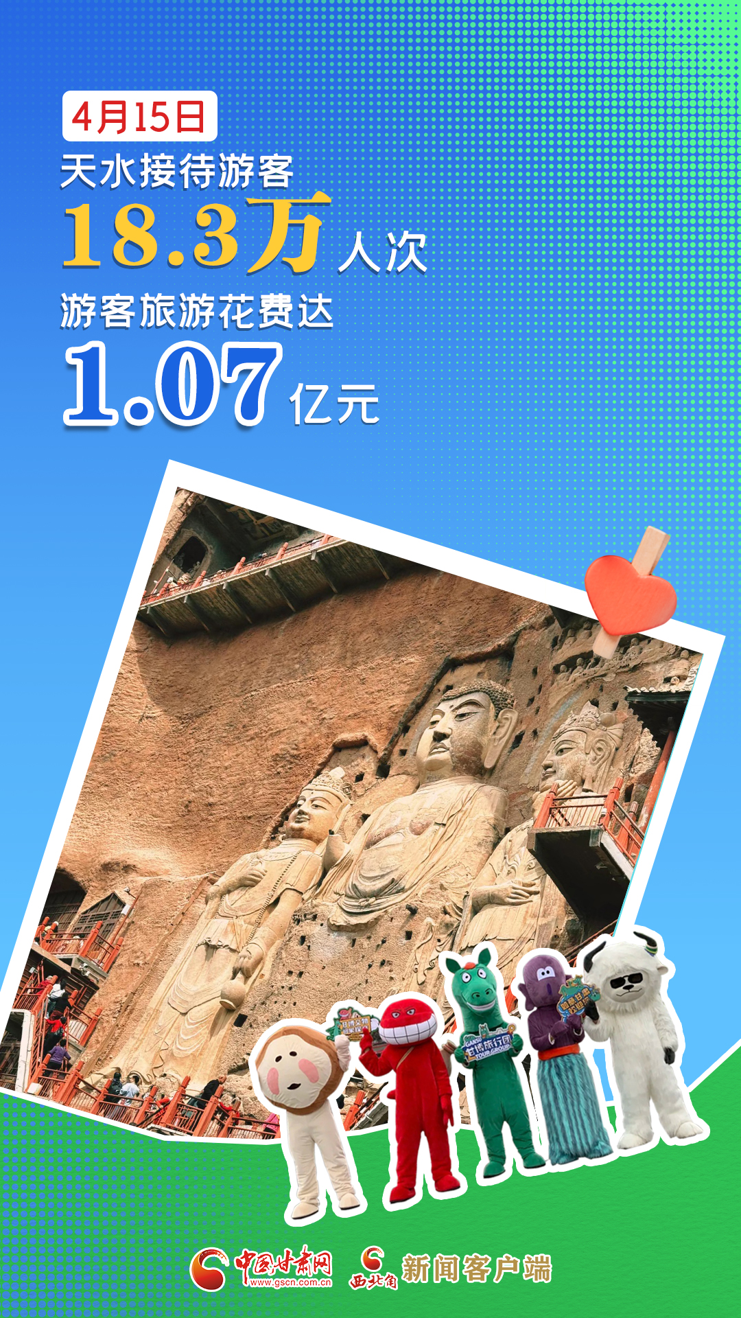海報(bào)|4月15日,天水市共接待游客18.3萬(wàn)人次,游客旅游花費(fèi)達(dá)1.07億元