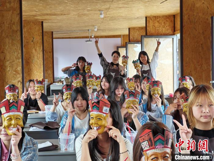 6月4日,德江當(dāng)?shù)貙W(xué)生在博物館體驗(yàn)畫(huà)儺面具。(受訪者供圖)