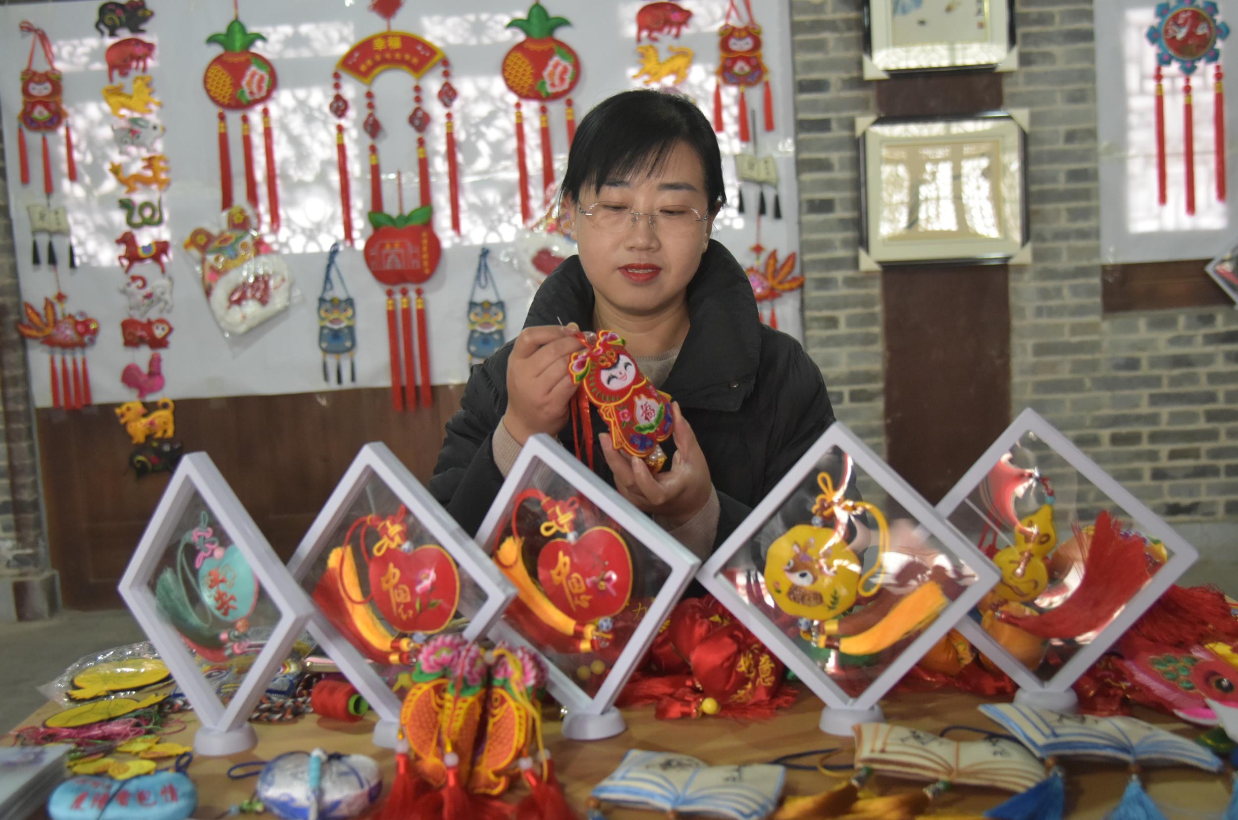 除了剪紙,鎮(zhèn)原縣香包、刺繡、書(shū)法等傳統(tǒng)文化藝術(shù)氛圍也很濃厚,深受廣大群眾喜愛(ài)。在文化一條街,十幾家書(shū)畫(huà)、香包、刺繡工作室緊挨,組成了一條文化長(zhǎng)廊,除了銷(xiāo)售文創(chuàng)產(chǎn)品外,還承擔(dān)著非遺文化傳承和技藝培訓(xùn),熱鬧而又成氣候。“作為一名非遺傳承人,不僅要把自己的香包刺繡產(chǎn)品設(shè)計(jì)好、做精致,更重要的是要把這門(mén)技藝教給更多的人,讓香包、刺繡這門(mén)技藝更好地傳承下去。”慶陽(yáng)香包刺繡非物質(zhì)文化遺產(chǎn)傳承人任艷艷說(shuō),自己在文化一條街已經(jīng)開(kāi)店近十年了,帶出了很多巧媳婦巧婆婆,還不時(shí)受邀在縣內(nèi)外進(jìn)行培訓(xùn)指導(dǎo)。