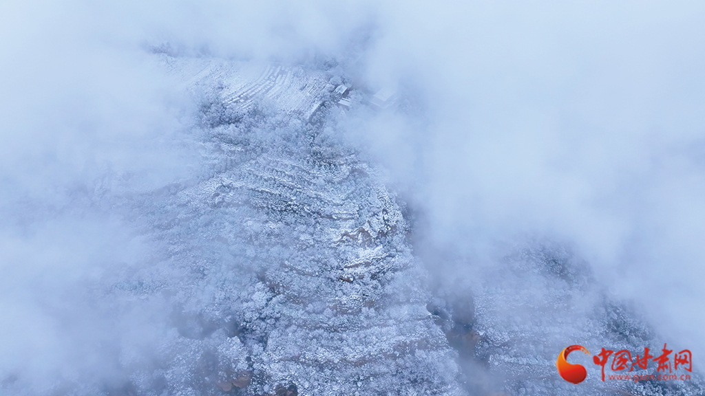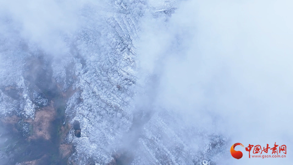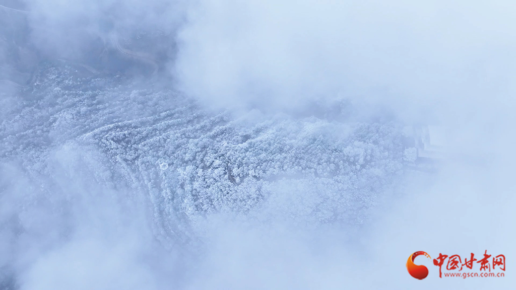 從高空俯瞰,云海之中霧凇景觀蔚為壯觀,連綿起伏的山巒美如仙境??~緲的云霧似輕紗流淌涌動(dòng),漫過靜謐的山林,好似一幅如夢似幻的水墨畫卷。