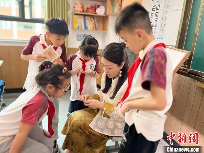 6月,國家級非物質(zhì)文化遺產(chǎn)代表性項(xiàng)目民間繡活(夏布繡)市級代表性傳承人吳婉菁正在給幾位學(xué)生展示夏布繡。(受訪者供圖)