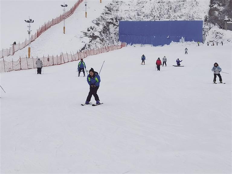接著來到興隆山滑雪場(chǎng),這里是冰雪運(yùn)動(dòng)愛好者的歡樂天地?;﹫?chǎng)經(jīng)理賈青云介紹,該滑雪場(chǎng)占地超400畝,擁有5條初、中級(jí)滑雪道,是中初級(jí)滑雪愛好者的樂園,今年全新打造的兩萬平方米豪華“戲雪樂園”更是引人注目。“開業(yè)不到一個(gè)月,已接待游客一萬多人,周末日均客流量超一千,平日也有四、五百人,滑雪場(chǎng)可同時(shí)容納2000人滑雪。”賈青云表示,滑雪場(chǎng)近期推出了優(yōu)惠活動(dòng),原價(jià)128元的門票現(xiàn)只需88元,包含滑雪服和存衣柜的使用。值得一提的是,經(jīng)過改造升級(jí)后的滑雪場(chǎng)加入了波西米亞風(fēng)格,設(shè)有拍照打卡地和咖啡廳,成為年輕消費(fèi)者熱衷的網(wǎng)紅打卡點(diǎn),游客在此不僅能滑雪,還能享受火鍋、烤肉等美食,體驗(yàn)別樣的冬日休閑時(shí)光。