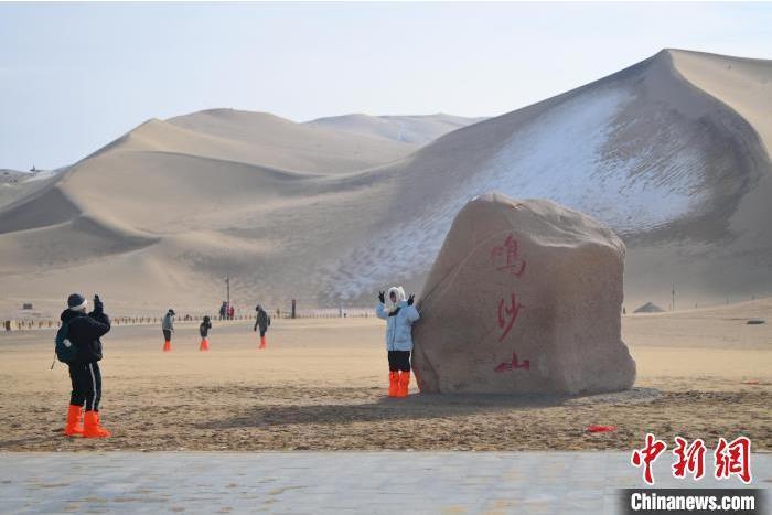 1月13日,甘肅敦煌鳴沙山月牙泉景區(qū)內(nèi),游人免票游玩。中新社記者 李亞龍 攝
