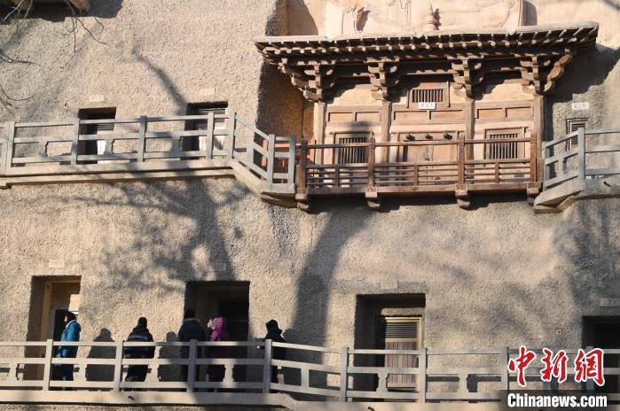 1月13日,甘肅敦煌莫高窟景區(qū)內(nèi),游人半價進行參觀。中新社記者 李亞龍 攝