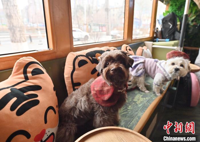 3月16日,吉林長春,寵物們在車廂內(nèi)親密互動。中新社記者 張瑤 攝