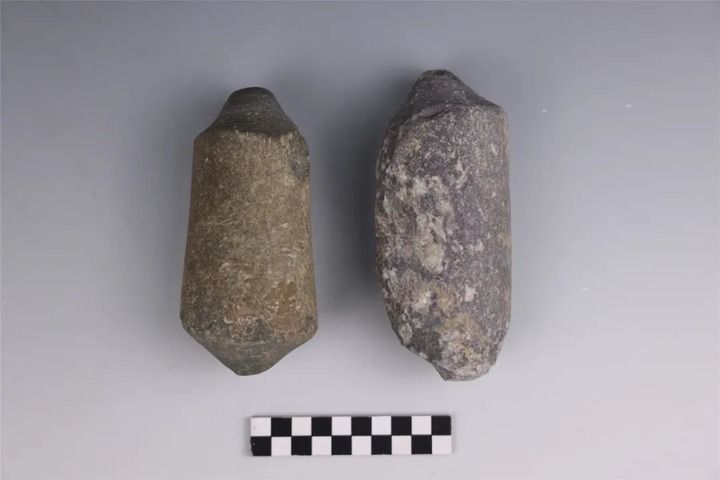 寺洼遺址內(nèi)出土的馬家窯類型石鉆、石環(huán)半成品。新華社發(fā)(寺洼遺址聯(lián)合考古隊供圖)