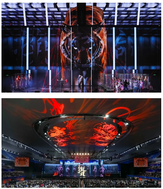 該劇最大的亮點(diǎn)在于創(chuàng)新性藝術(shù)融合,將非遺、科技、禪意、潮流、AI融入先鋒音樂(lè)話(huà)劇,打破傳統(tǒng)觀演模式和傳統(tǒng)舞臺(tái)結(jié)構(gòu),巧妙植入演唱會(huì)、音樂(lè)劇、話(huà)劇、舞劇甚至是電影多種藝術(shù)表現(xiàn)形式,通過(guò)人工智能、影視化、動(dòng)畫(huà)真人融合等最新科技賦能舞臺(tái),實(shí)現(xiàn)“戲劇+影視+Live”多種藝術(shù)場(chǎng)域的融合,“創(chuàng)造”了既現(xiàn)代又滿(mǎn)載中國(guó)審美的“敦煌”空間,讓觀眾沉浸體驗(yàn)敦煌文化的輝煌與魅力。