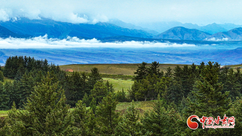 6月21日清晨,位于張掖市肅南裕固族自治縣境內(nèi)的祁連山國(guó)家公園,細(xì)雨初歇。云海如傾瀉的瀑布,在峰巒間翻涌,座座山峰時(shí)隱時(shí)現(xiàn)。朦朧的雪山與蒼松翠柏的原始森林、一望無(wú)際的碧綠草原,共同鋪展成這幅雨后的人間絕美畫(huà)卷。