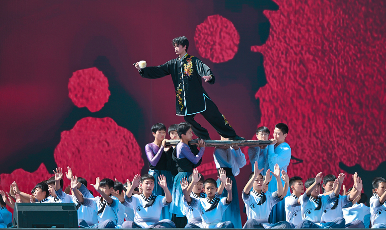 活動(dòng)伊始,開(kāi)場(chǎng)片《歡迎乘坐崆峒號(hào)》以“環(huán)西部火車(chē)游·崆峒號(hào)”平?jīng)雎糜螌?zhuān)列為靈感,通過(guò)跨時(shí)空對(duì)話串聯(lián)崆峒山古今脈絡(luò),拉開(kāi)活動(dòng)序幕?,F(xiàn)場(chǎng),街舞與崆峒武術(shù)團(tuán)體合作的《武韻崆峒》展現(xiàn)武術(shù)與現(xiàn)代肢體藝術(shù)新生機(jī);笛子演奏與武術(shù)冠軍聯(lián)袂呈現(xiàn)的《崆音劍影》打造“可聽(tīng)的武術(shù)”沉浸式體驗(yàn);30人陣容的江蘇武協(xié)女子太極拳團(tuán)體演繹《鶴起崆峒》,詮釋武術(shù)新功用;國(guó)風(fēng)歌手與秦腔表演藝術(shù)家合作的《秦韻長(zhǎng)歌》,展現(xiàn)“武戲同源”的多元魅力。