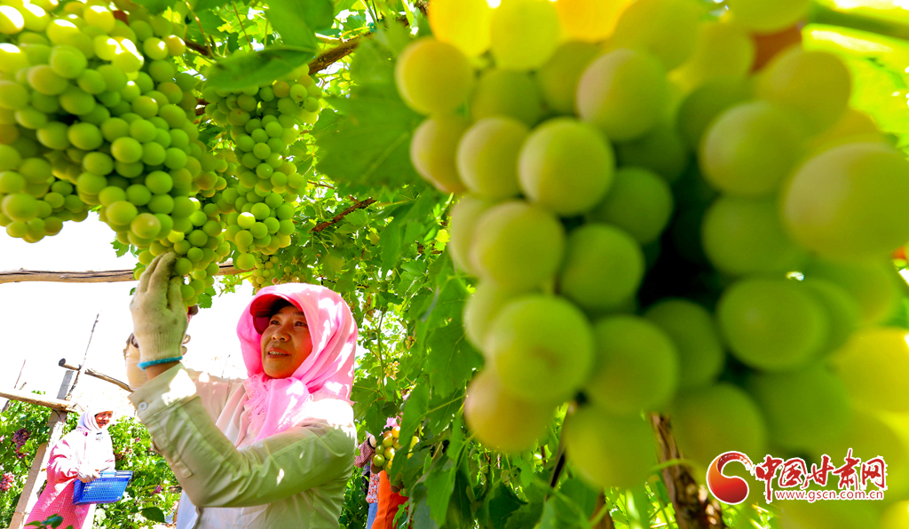 8月12日,甘肅省張掖市臨澤縣板橋鎮(zhèn)1.5萬(wàn)畝葡萄喜獲豐收,進(jìn)入采摘期,吸引著周邊省市客商和游客前來(lái)觀賞、采摘與訂購(gòu)。