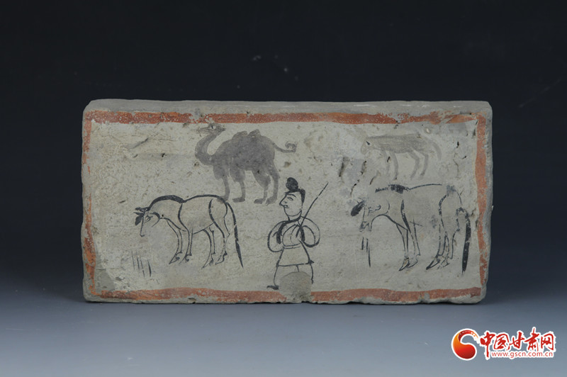 另一方面,它采用沒骨畫法,以彩色為墨,通過墨色濃淡來表現(xiàn)空間的遠(yuǎn)近。遠(yuǎn)處駱駝、毛驢的形象在墨色變化中層次分明,形成強(qiáng)烈的對比感。“此磚不僅是中國已知現(xiàn)存較早運(yùn)用沒骨畫法的美術(shù)作品之一,而且這兩種繪畫手法并用在一塊壁畫磚上的情況,在中國美術(shù)史上也是較早的發(fā)現(xiàn),甚至比西方出現(xiàn)類似手法還要早。”孫麗娟介紹。