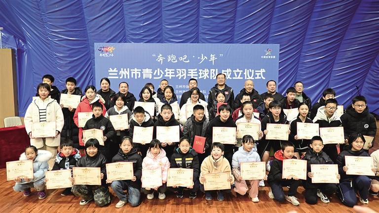 與會領(lǐng)導(dǎo)嘉賓為球隊3位領(lǐng)隊孫少衛(wèi)、張耀華、葛雪花頒發(fā)聘書,寄語他們帶領(lǐng)球隊積極進取,展現(xiàn)蘭州青少年體育風(fēng)采;為48名入選隊員頒發(fā)證書,寄語小將們以夢為翼、刻苦訓(xùn)練,在揮拍逐光中錘煉本領(lǐng)、奮勇拼搏,為蘭州羽毛球事業(yè)爭光添彩。