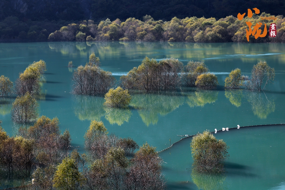 白龍江湍急的流速在此悄然蛻變?yōu)橐粸硿赝竦谋滩ǎ娉纬喝珑R,映照出如江南般清淺而纏綿的景致。