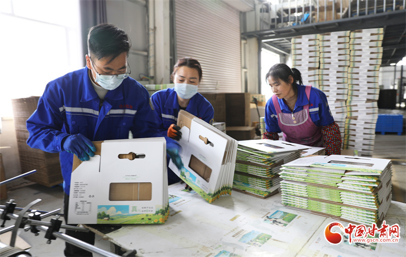 時(shí)下,在位于民樂工業(yè)園區(qū)的一家生產(chǎn)車間內(nèi),工人們正緊張有序地進(jìn)行包裝盒裝配、成型作業(yè)。