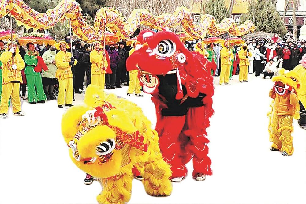 隨著鼓點(diǎn)愈發(fā)急促,廣場(chǎng)上頓時(shí)沸騰起來(lái)。舞獅一躍而起,時(shí)而翻滾、時(shí)而嬉戲;秧歌隊(duì)踩著碎步徐徐前行,扇子與花燈舞動(dòng)出五彩斑斕的弧線。鑼鼓手們節(jié)奏分明,鏗鏘之聲震得人心里發(fā)燙。圍觀的群眾里三層外三層,孩子們騎在父親肩頭,老人瞇眼含笑,年輕人舉著手機(jī)不住地按快門。一位村民擠在人群中高聲喝彩:“這才叫過年!”